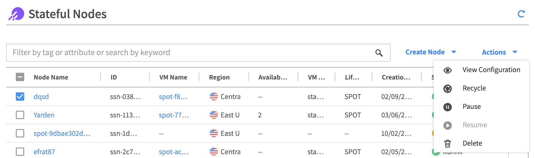 To manage your stateful nodes, in the Spot console, click Elastigroup and click Stateful Nodes.